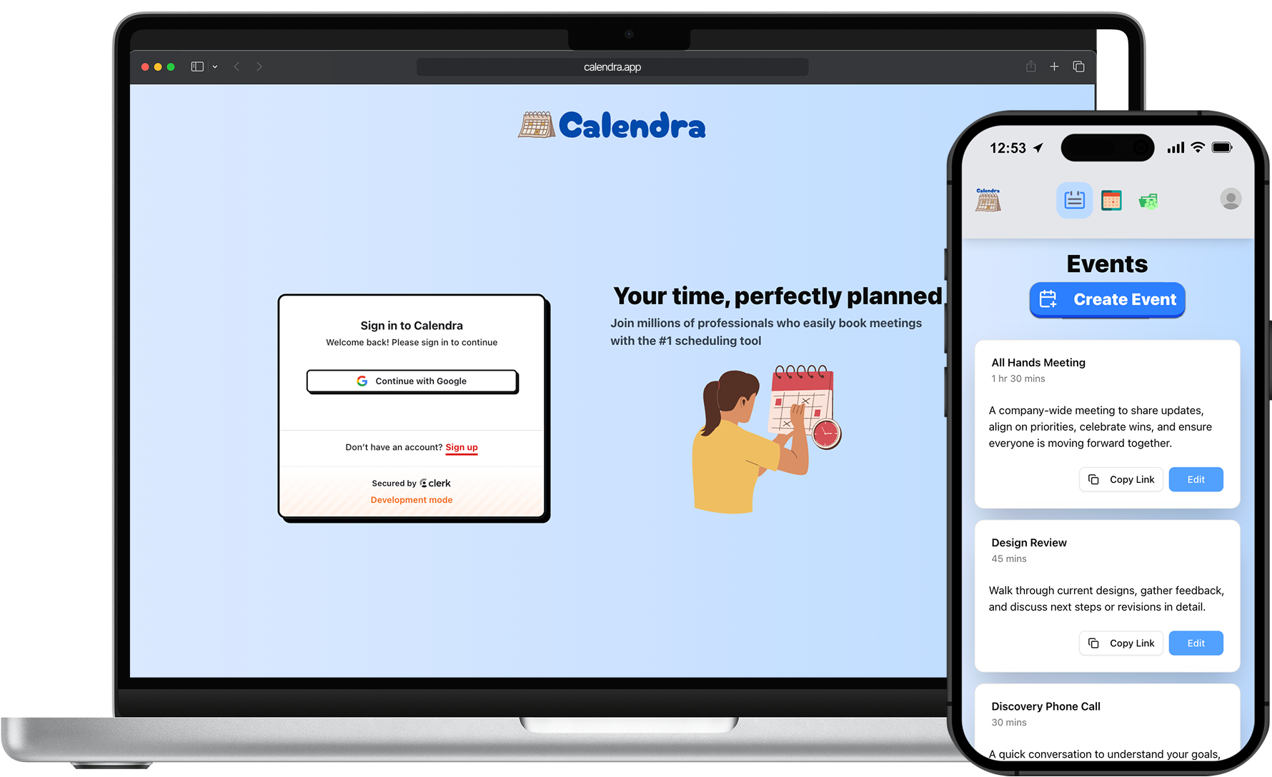Authentication plays a foundational role in the product, enabling secure scheduling, personalized availability, and protected event management without adding friction to the user experience. By integrating Clerk, I was able to implement authentication and user state in a way that felt seamless to end users while remaining flexible enough to support public profiles, private events, and OAuth-based calendar connections.